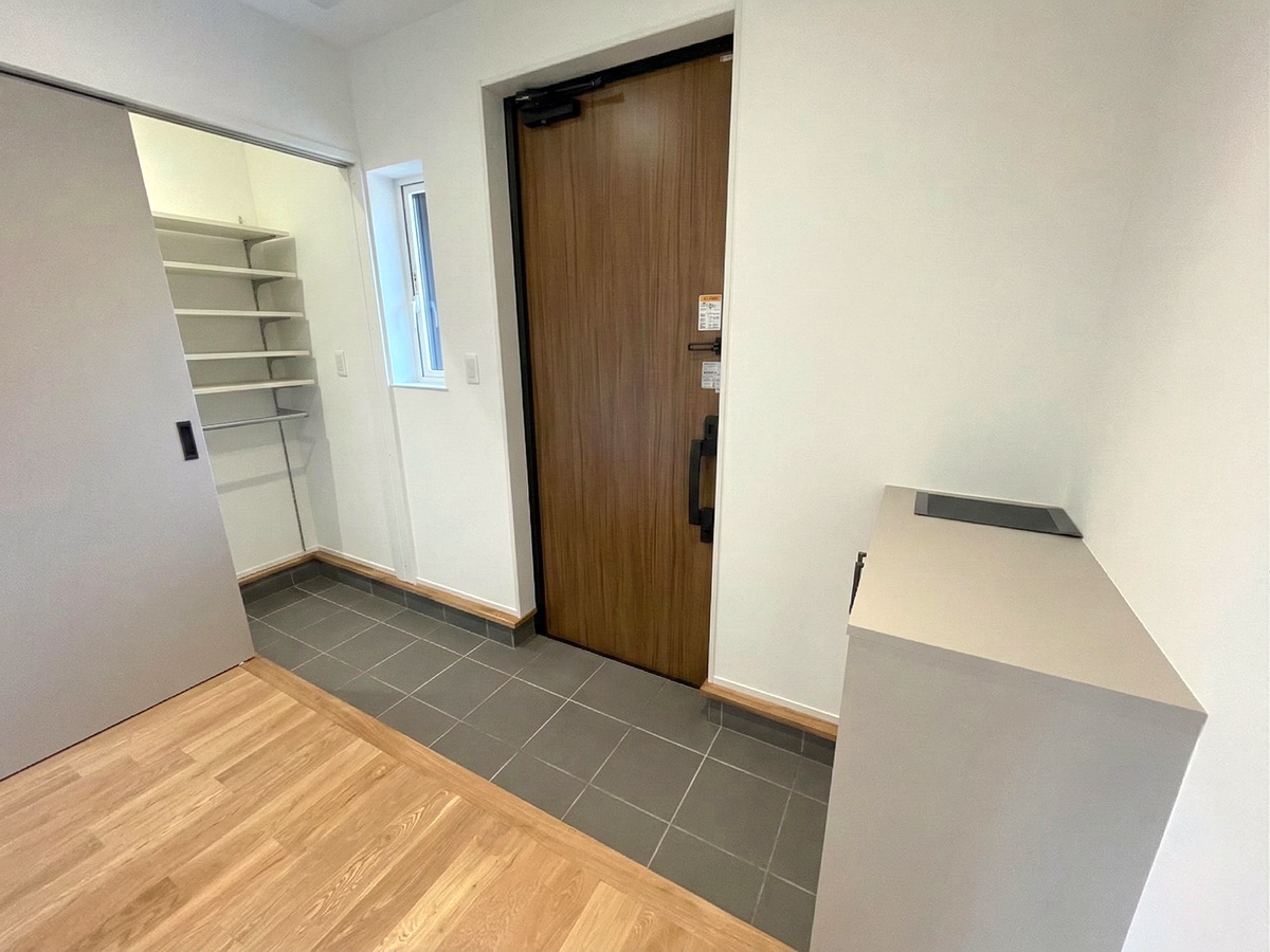 扉を開けると、まず迎えてくれるのはゆとりある玄関。子供たちが横並びで靴を履ける広々としたスペースは、慌ただしい朝を笑顔に変えてくれます。隣接するシューズクロークは、コートや小物までを整然と収め、美しい空間を保ちます。