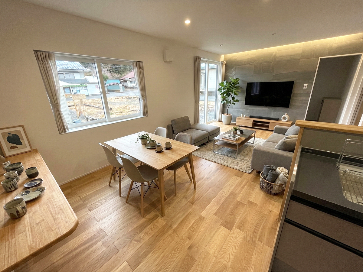 時を重ね、家族に寄り添う。木の香りと機能美が調和する家 #和室 【プランナーのつぶやき】家づくりで大切にしたのは、家族の「今」を楽しみながら、数十年先の「これから」も愛せる場所であること。その想いを形にするため、私たちは目に見えるデザインだけでなく、目に見えない「住まいの質」にも徹底的にこだわりました。一歩足を踏み入れた瞬間に感じる、本物の心地よさ扉を開けると、まず迎えてくれるのはゆとりある玄関。子供たちが横並びで靴を履ける広々としたスペースは、慌ただしい朝を笑顔に変えてくれます。隣接するシューズクロークは、コートや小物までを整然と収め、美しい空間を保ちます。この清々しい空気感を支えているのが、断熱等級6・UA値0.26という最高クラスの断熱性能と、隙間を極限までなくしたC値0.38という高い気密性です。冬の朝も、夏の帰宅時も、家中の温度差が少なく、家族の健康を優しく守り続けます。暮らしを彩る素材と、家事を慈しむ工夫暮らしの中心となるLDKは、キッチンとダイニングを横並びに。配膳や片付けがスムーズな動線は、忙しい毎日に心のゆとりを生みます。リビング隣の4.5帖の和室は、将来1階だけで生活を完結できる「終の棲家」としての機能も備えました。また、素材選びには一切の妥協を許しませんでした。足裏に心地よいオーク無垢材、強さと美しさを兼ね備えたタモやゴムの集成材、手に触れるたびに安らぎをくれるヒノキの手摺。適材適所に配された様々な樹種が、空間に豊かな表情を与えています。「今」の利便性と「未来」の可変性1200mm幅のワイドな洗面台と、3.5帖のランドリールーム。天候に左右されず室内干しができるこの場所は、家事のストレスを解放してくれる特別な空間です。2階はあえてトイレを設けないという大胆な選択をしました。その分、主寝室を贅沢に広く。2つの入り口を設けた間取りは、子供たちの成長に合わせて姿を変え、家族の物語に寄り添い続けます。次世代へ受け継ぐ、確かな価値この住まいは、国が定める厳しい基準をクリアした**「長期優良住宅」**に認定されています。優れた耐震性、メンテナンス性、そして高い省エネ性能。お施主様がこだわり抜いた「素材」と「意匠」、そして私たちが追求した「性能」。そのすべてが調和した、一生モノの住まいです。サンホームズでは構造材や仕上げ材に県産木材を使用しています。今回の住宅も「いわて木づかい住宅普及促進事業」を活用しており、県産材を使用することで補助金を受給することができました。 1階だけでも暮らしが整う、29坪のちょうどいいお家 建築実例 Contact 家づくりに興味はあるけれど、何から始めればいいのかわからない。そんな不安や疑問をサンホームズが一緒に解決します。 家づくり無料相談 資料請求・お問い合わせ