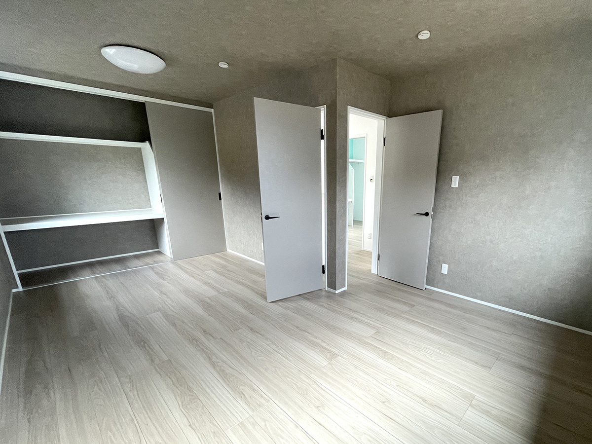 2階はあえてトイレを設けないという大胆な選択をしました。その分、主寝室を贅沢に広く。2つの入り口を設けた間取りは、子供たちの成長に合わせて姿を変え、家族の物語に寄り添い続けます。